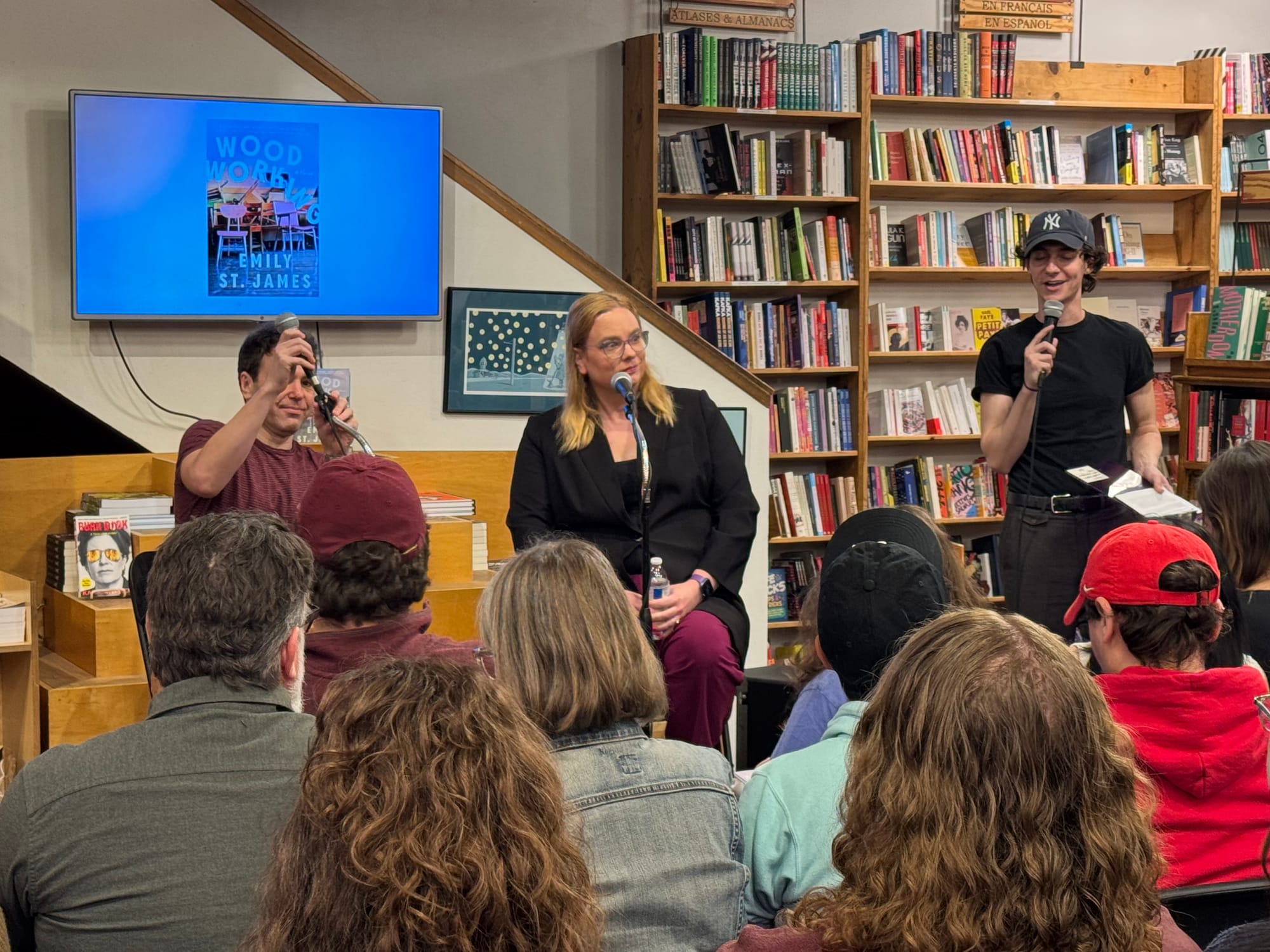 The next night I went to Skylight Books to celebrate my friend Emily St. James’s new novel WOODWORKING. Emily was in conversation with Jon Lovett (of Pod Save America, a person who I strangely have occasional parasocial dreams about — we have a very close friendship in my dream life). I ran into an old friend there (Hey Kyle!), and I beamed from the side of the very packed audience as my brilliant friend answered questions and made everyone laugh and was gorgeous and hilarious.