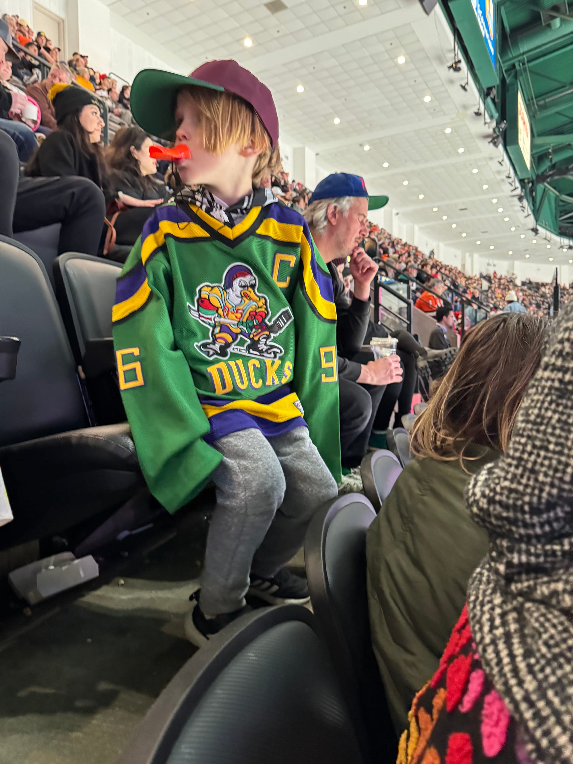 We took the kids to an Anaheim Ducks game, because Toby and his best friend are obsessed with The Mighty Ducks. We didn’t know that it was also Pride Night, but let me tell you: a stadium full of people watching a hyper-masculine sport in Orange County, California is not where I expected to feel hopeful, but sometimes life is surprising. Like most sporting events, there was a moment to honor the troops, which has traditionally darked me out (thousands of people cheering on the American war machine makes me uneasy), but as the Jumbotron cut away to a trans woman who had proudly served our country for many years and thousands of people cheered and gave her a standing ovation, I felt proud and comforted in a crowd of Americans for the first time in a very long time.