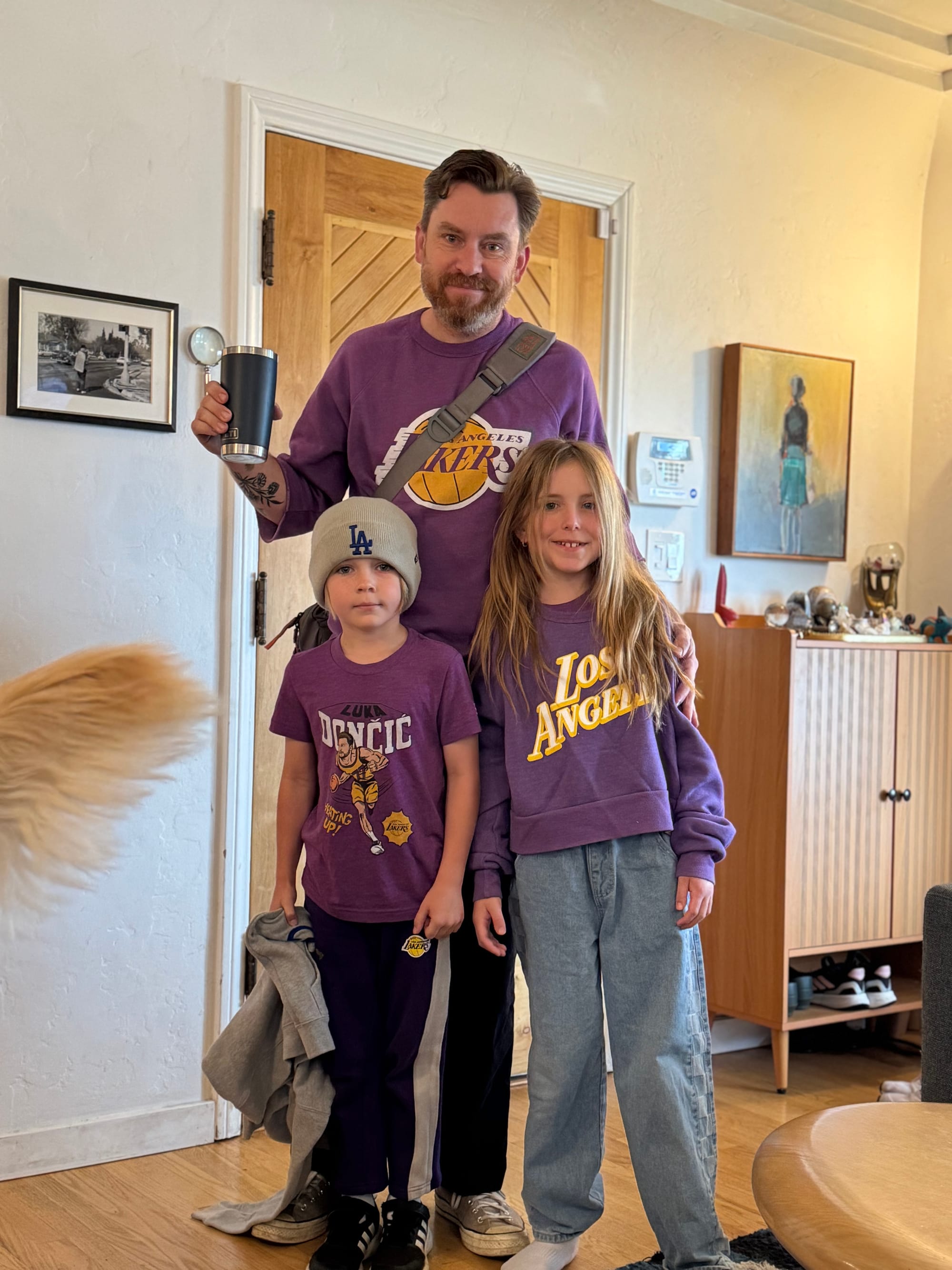 - The joy on my husband's face when every member of the family comes downstairs wearing Lakers gear on the morning of a playoff game: