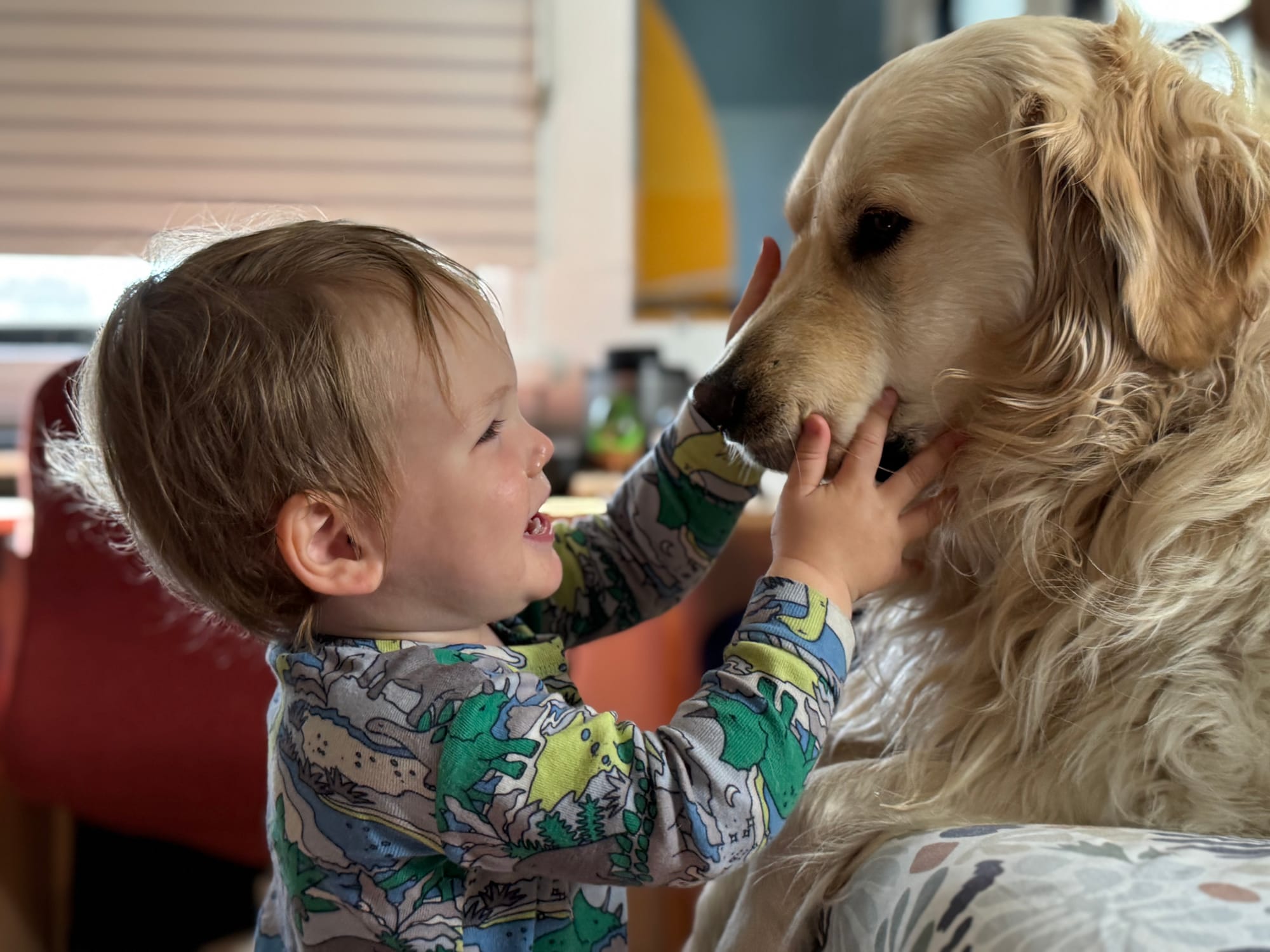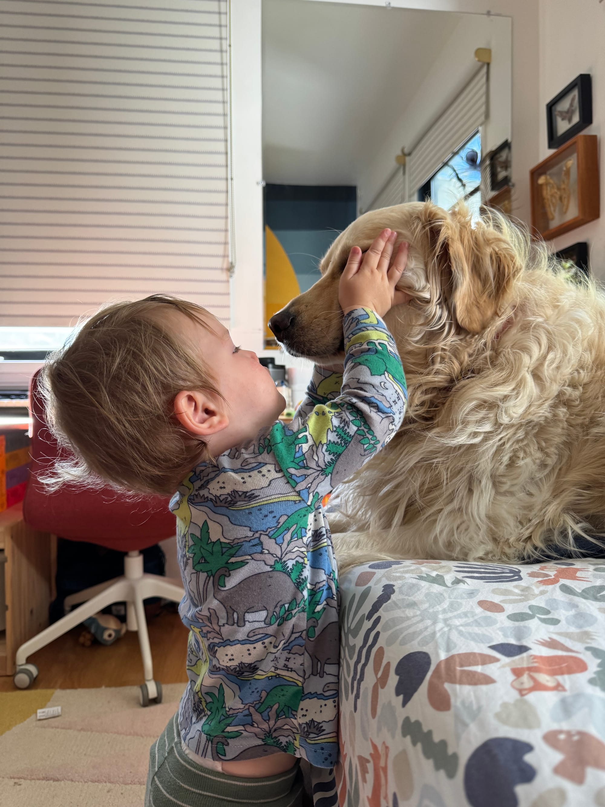 Aka the squishiest love bug who ever lived. She just wants to love you, lick you, and occasionally take bites of your food. Zack drove her all the way across the country so she could be with us in Vermont and her joy was worth it. I am grateful for the patience she has with my nephew (who loves her so much it sometimes hurts), and for the beauty of their inter-species best friendship. I'm grateful for the hour or so every night when she cuddles up to us in bed and for the minutes in the morning where she will put herself in the middle of any type of human affection without any regard for her body size or the sharpness of her nails. I'm grateful that she had the chutzpah to go get her own stuffy and sit herself right down in the middle of my daughter's birthday sleepover (an iconic move that said: "I'm just one of the gals"). She's a ray of sunshine in this dark world.