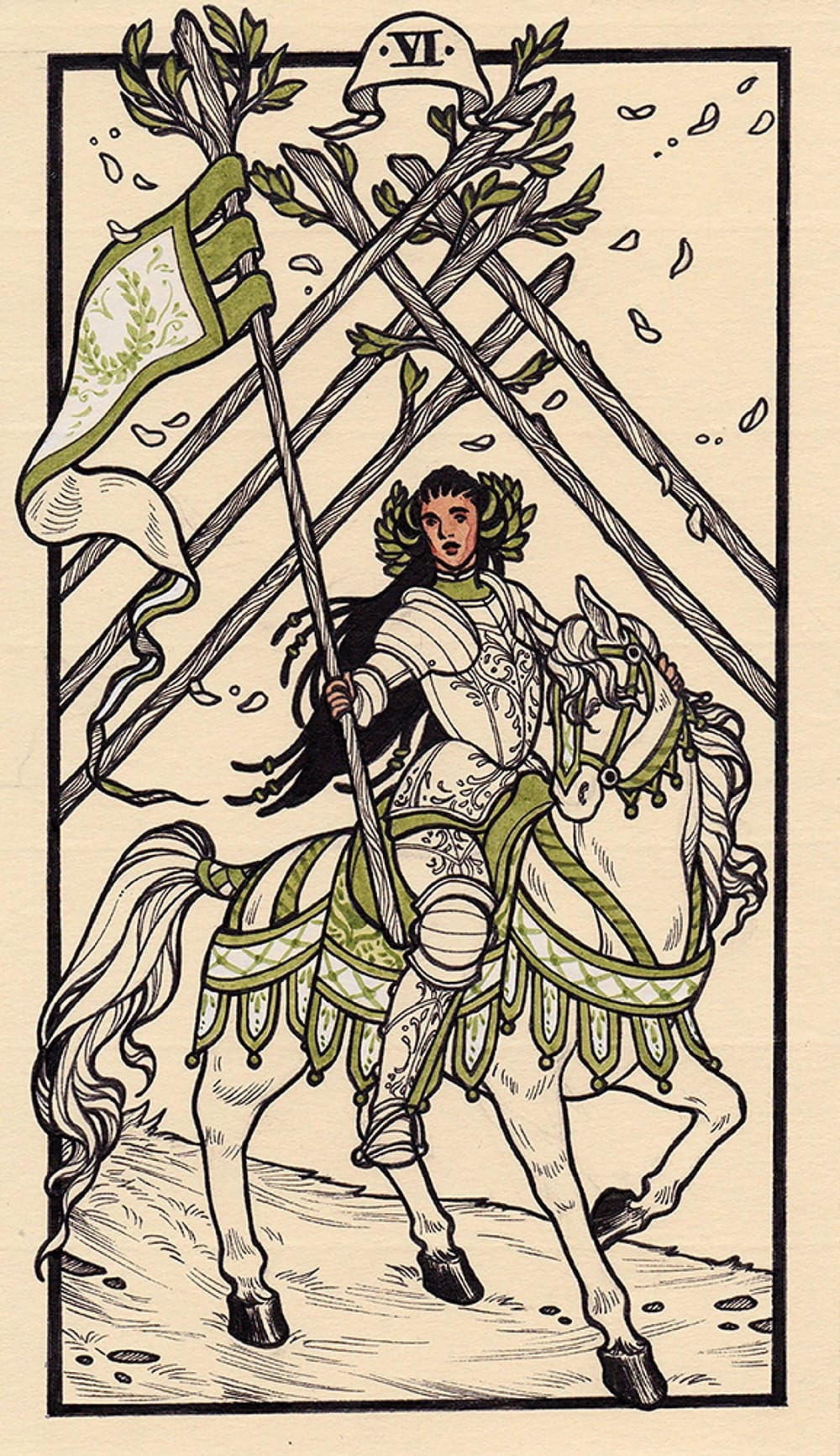 The six of wands is about recognition, awards, victory, and external validation. In most decks, the six of wands features a person, sometimes atop a horse, a victory wreath around their neck, being received by a crowd of adoring fans. While the six of wands is a positive card, I’ll go ahead and say it: most artists have an unhealthy relationship with recognition.