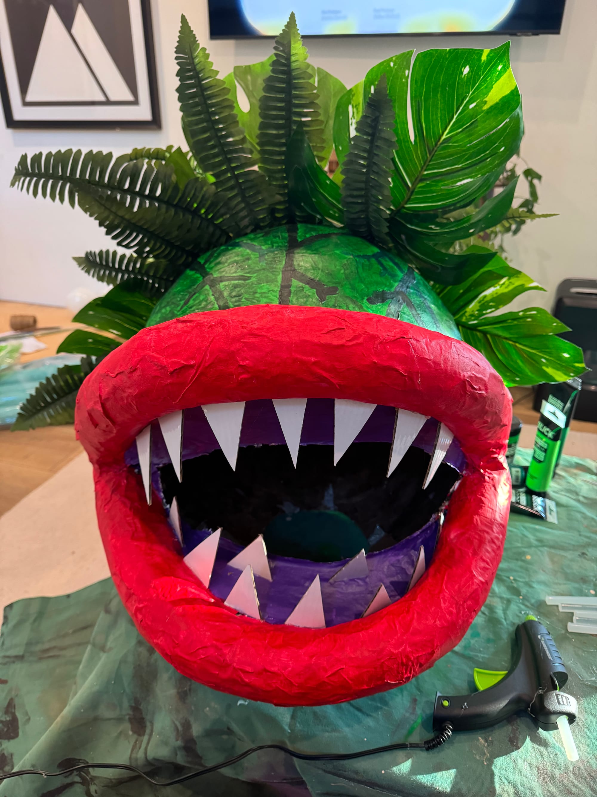 Graeme is going to be Audrey II from Little Shop of Horrors. It’s going to be epic. This costume took me no less than 30 hours to build, and this is only the headpiece. Did I have other things to do? You betcha. Will she be able to navigate streets and candy with this thing on her head? I don’t know! We’ll find out! Is this costume part of why I’m completely burned out? Of course it is. Thank you for this award.