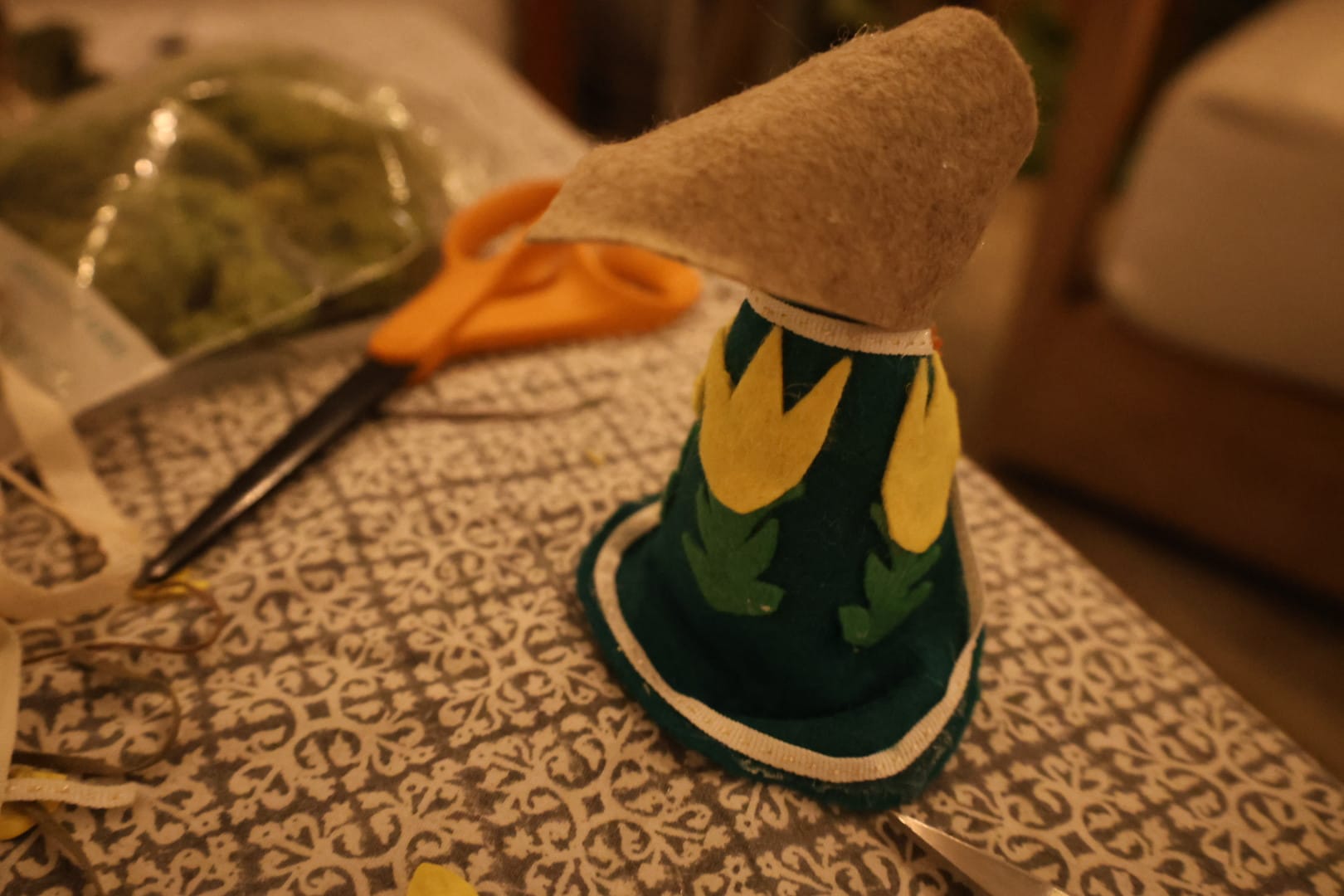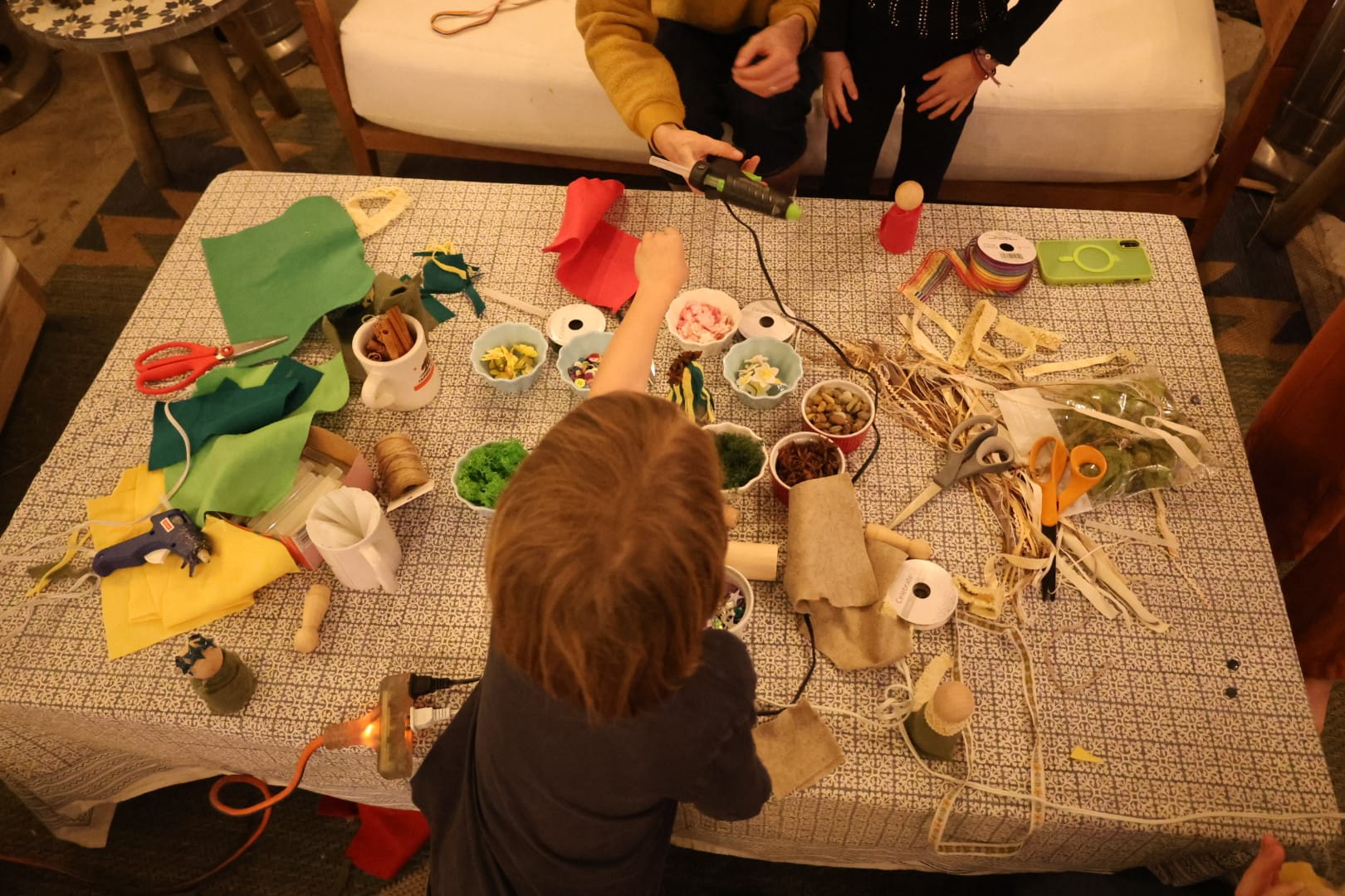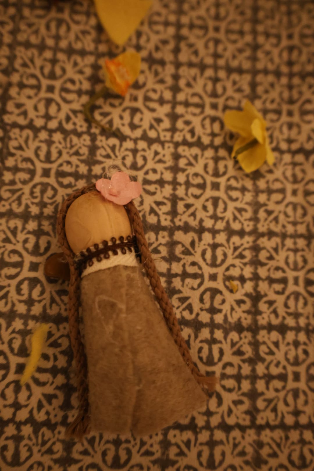 We crafted Brigid dolls to honor the goddess. Traditionally, the ancient Celts would have crafted their Brigid dolls out of corn husks, grass, or other natural elements. I went to Michaels. I incorporated moss and stones into our materials, but there were also buttons and sparkly rhinestones. The kids loved this part of the night, and I learned that my sister-in-law is one of the world's pre-eminent craftswomen. I mean, seriously, check out her Brigid:
