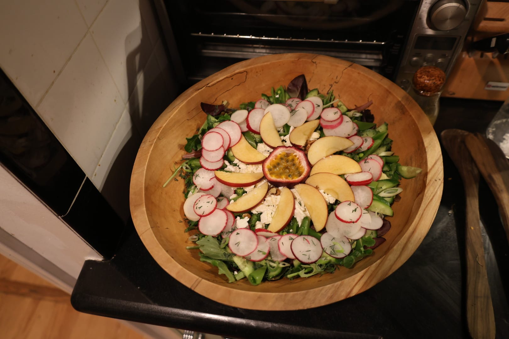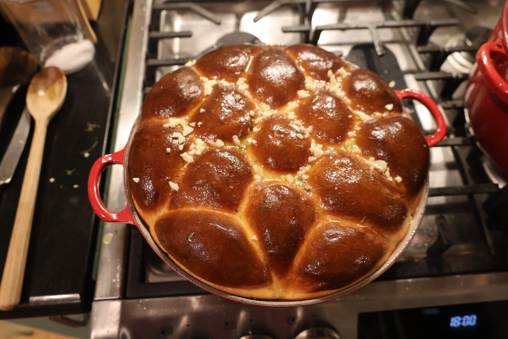 Garlic Herb Rolls, Lemon Lavender Bundt Cake (I added edible flowers for beauty), Cozy Beef Stew, Megan's gorgeous salad.
