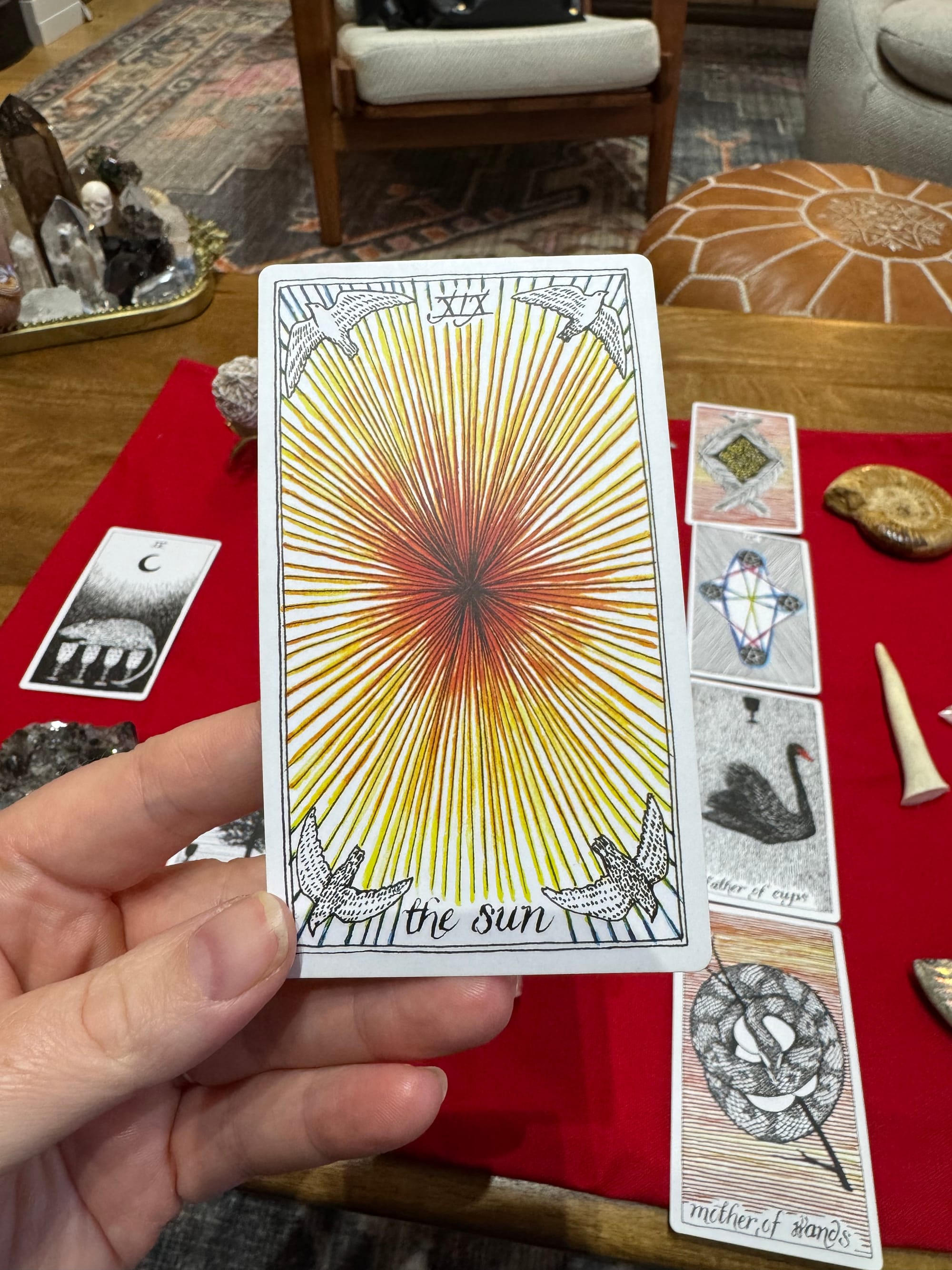 This is not meant to scare you, but there's also a world where The Sun means Completion, i.e. that your time in this apartment is complete. I'm not saying that that is what it means (and there is much in this spread to suggest that you will not be forced out of your home), but I'd like to reassure you that even if The Sun is indicating that one cycle is ending, your spread indicates that what comes next is even better.