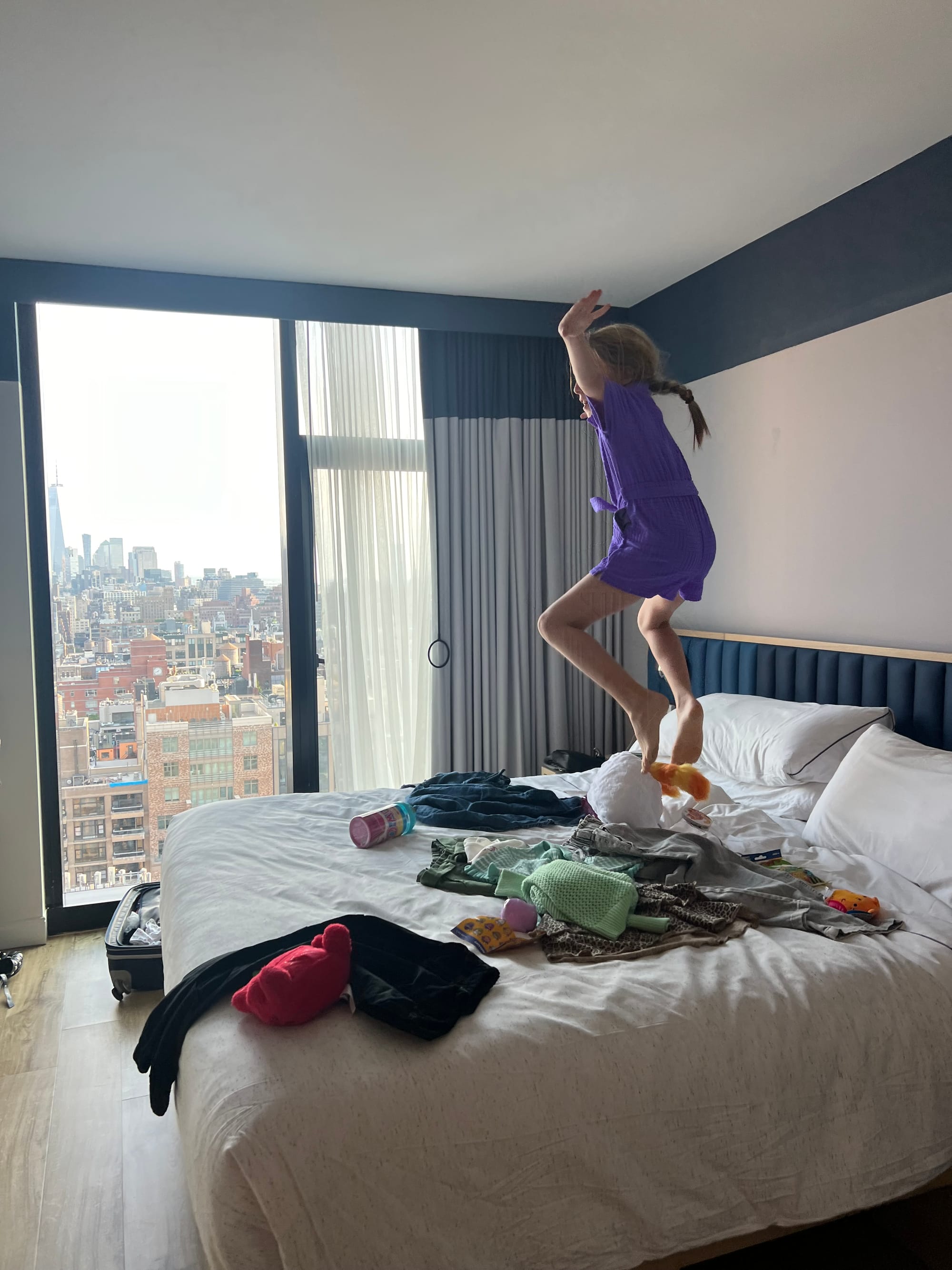 Our flight back to LA was at 5pm EST, and we didn’t get back to our home until well after 11pm. The kids were jet-lagged and feral, and we managed to wrangle them into their beds after quickly scarfing down a pizza. I lay next to Graeme, tickling her back, and in that moment, she looked me dead in my eyes and said, “So, is Santa real?”