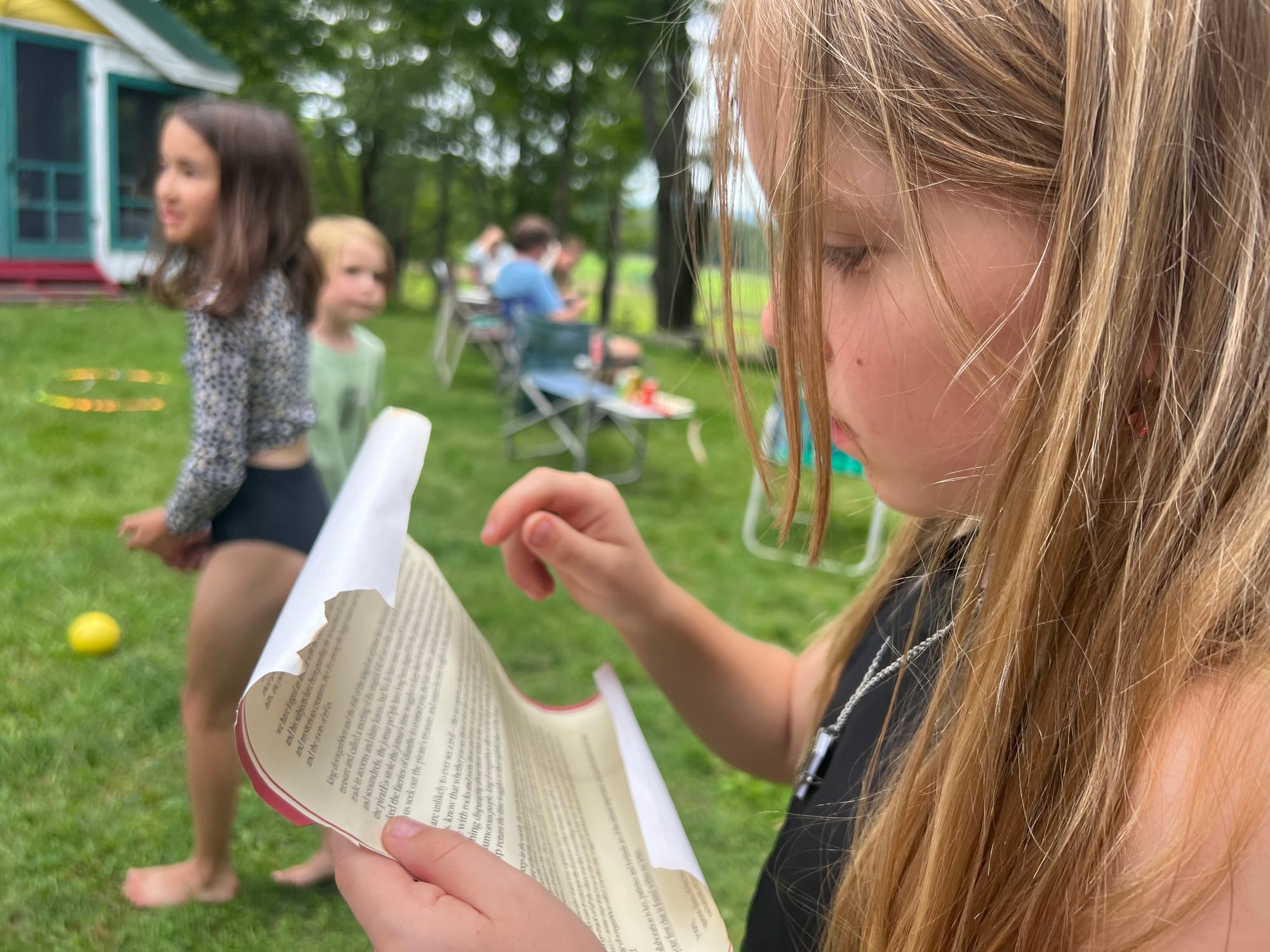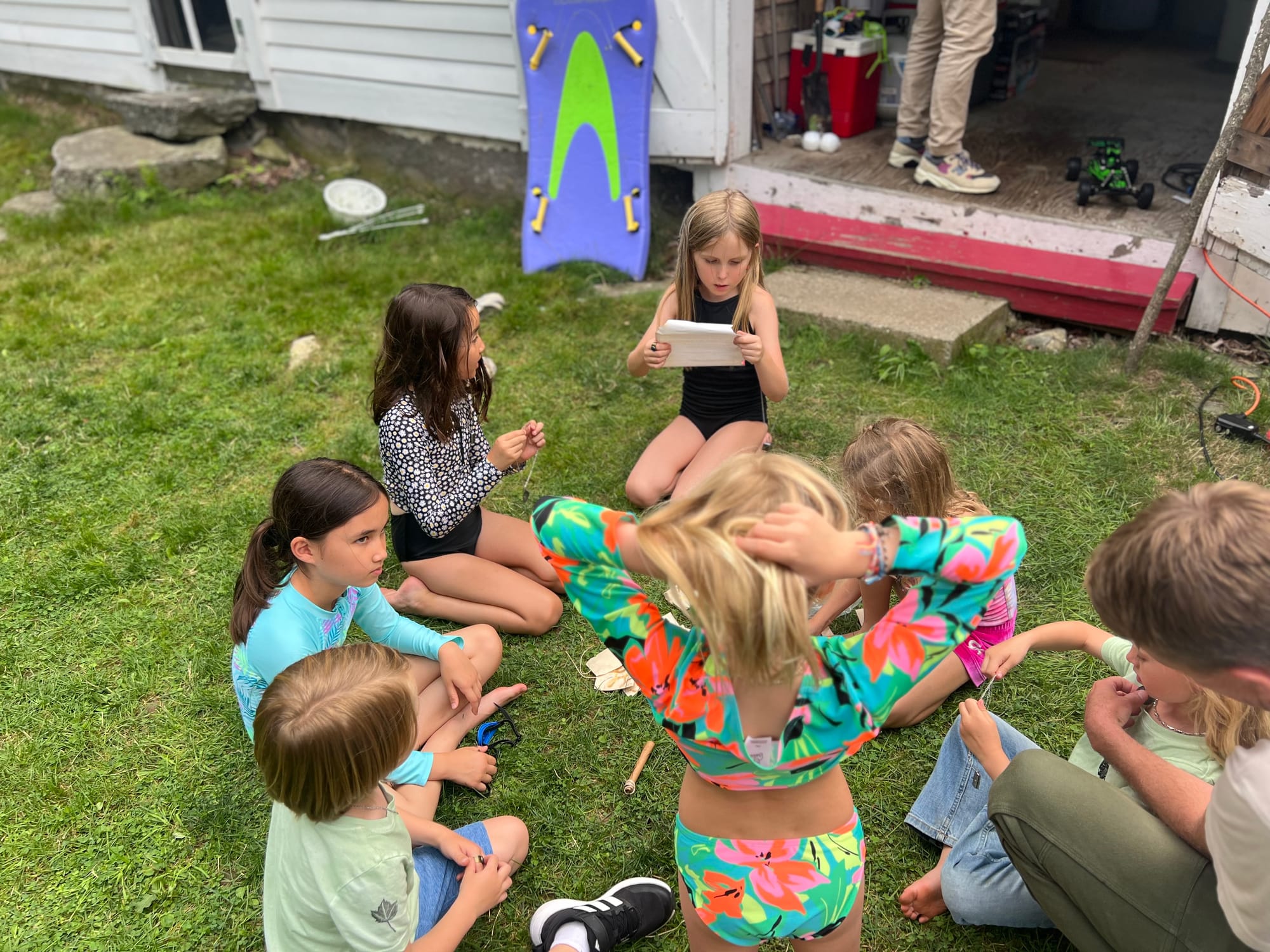 A few weeks ago, we were in Vermont with a collection of our friends and their kids. This is the third year in a row that I’ve staged a treasure hunt complete with mythology, internal logic, ongoing character arcs, and epic lore. I spent a few hours running around in the hills and woods hiding clues (and bossing my husband around), and then it was time for the magic to begin.