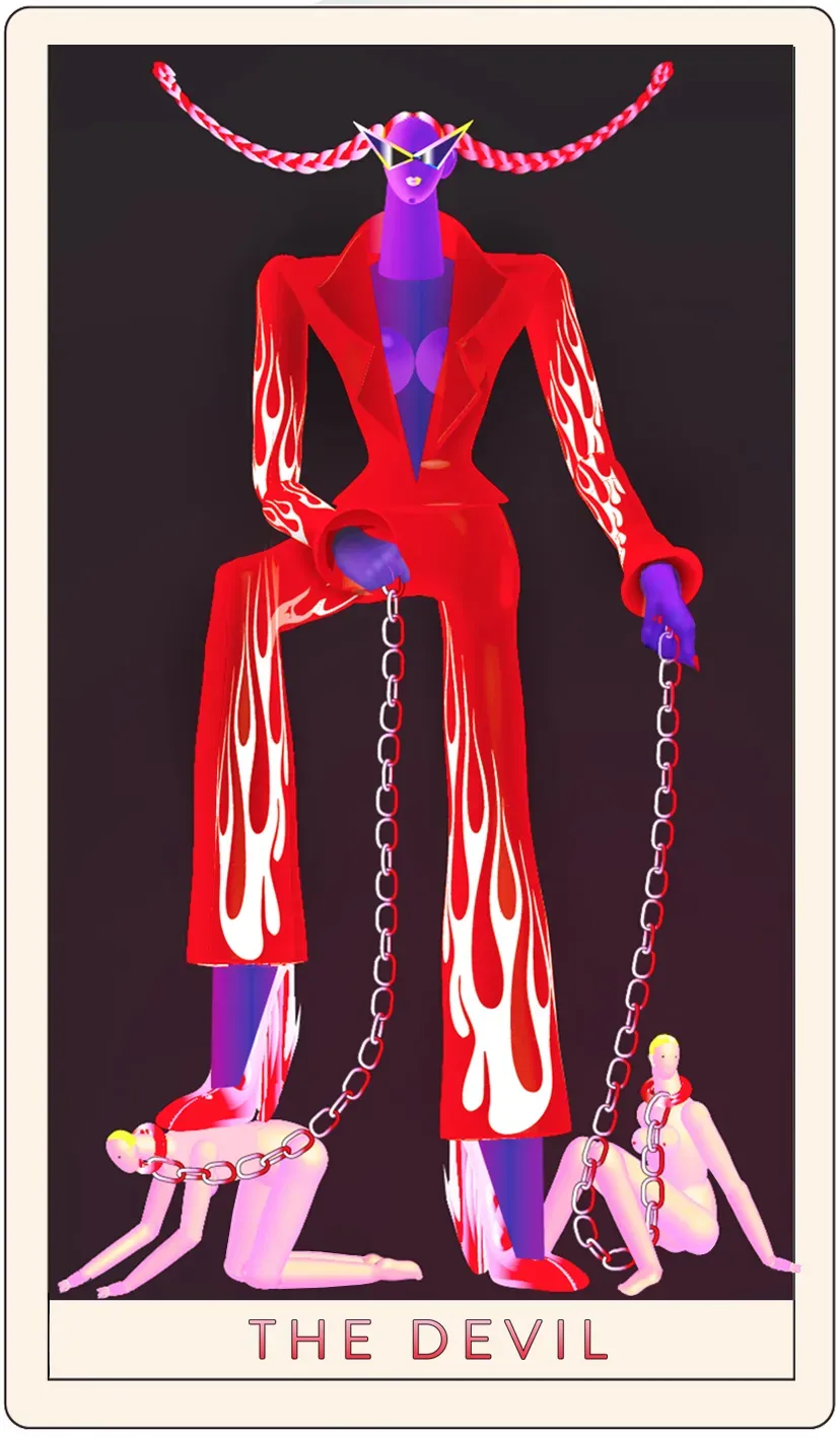 When you pull The Devil in a tarot reading, you are being invited to ask yourself where you might be prioritizing comfort over growth. Sometimes the pursuit of instant pleasure is exactly what you need. The Devil can bring passion, creativity, lust. The body seeks pleasure, and I’m not here to tell you to abstain from treats and orgasms. YOU NEED TREATS AND ORGASMS!