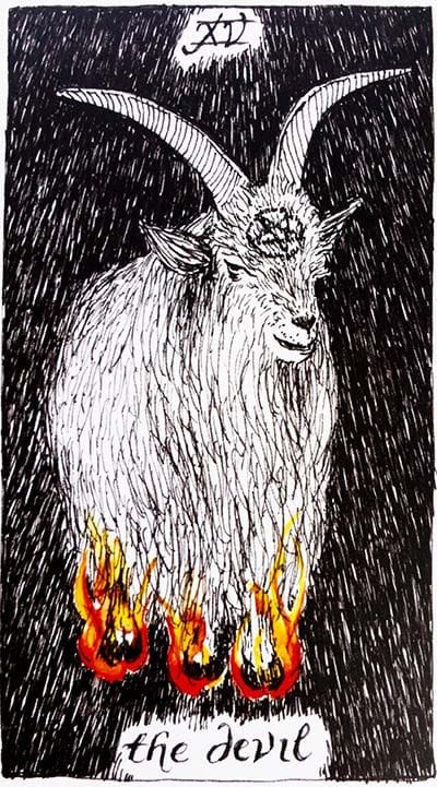 In Advanced Tarot: An In-Depth Guide to Practical and Intuitive Tarot Reading, Paul Fenton-Smith writes that The Devil card, “represents being seduced by the material world…. While passionately pursuing worldly possessions, people can lose sight of spiritual direction… Each new object acquired brings a fleeting period of excitement that rapidly passes as the gadget loses its novelty. By pursuing ownership of more and more chattels, a person’s time becomes taken up with procuring objects and then with maintaining them, rather than living an abundant life.”