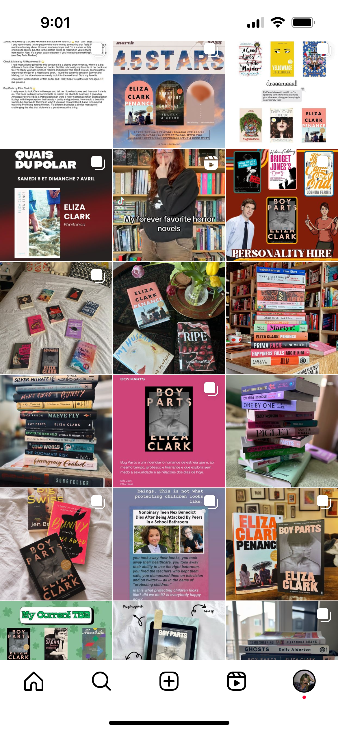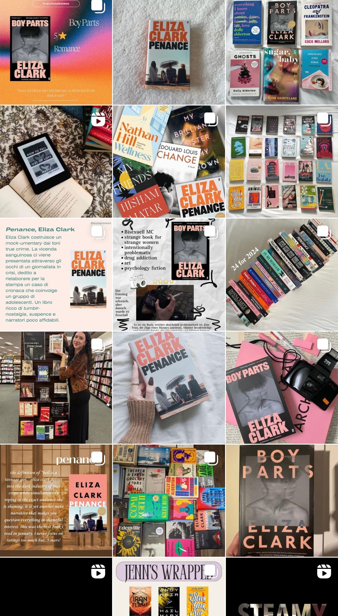 I’d had an inkling years ago that there might be another Eliza Clark when a credit appeared on my IMDB page for a show I’d never worked on. Some Eliza Clark had been a producer on a show called HOW TO LOOK GOOD NAKED CANADA. I’d never seen, written, or produced that show, but it gave me a little chuckle and I forgot about it. Whoever produced that show is not the Eliza Clark who has written a book called BOY PARTS that is taking the world by storm. No, because this Eliza Clark is a decade younger than I am. Twenty-fuckin'-five when her debut novel is published and blown up on the corner of TikTok called BookTok.