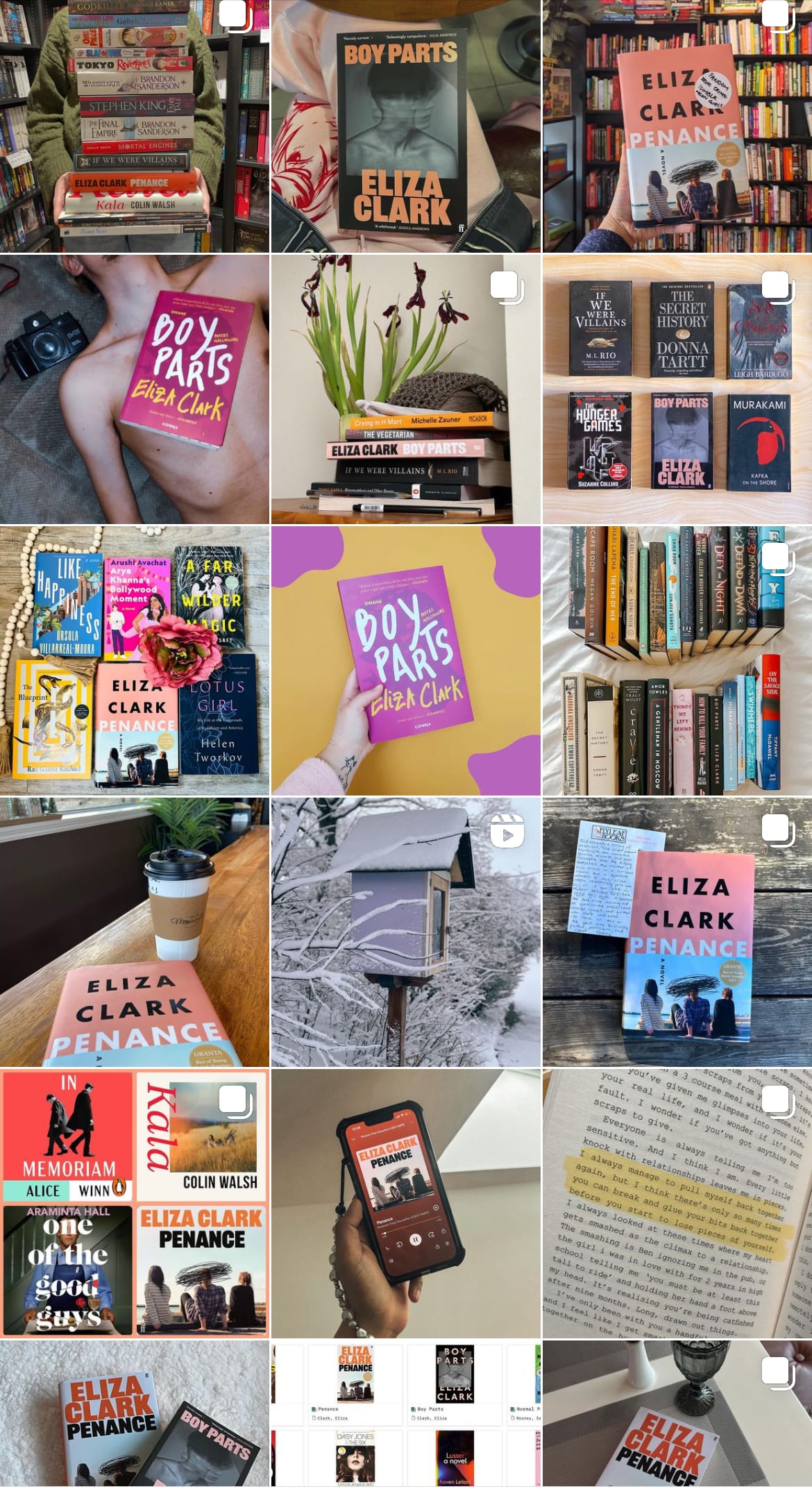 Eliza Clark is a decade younger than I am, publishing a novel that is being touted as genius all over the internet. And I’m stealing her valor. At first, I open these notifications and think, ugh, annoying, now I have to write to this internet stranger and tell them they’ve got the wrong Eliza. But there’s also a moment before I respond where I get a little hit of the validation meant for her, where I imagine myself as a beautiful, young, British writer, still under thirty, publishing her edgy debut novel to critical and reader acclaim. A few years later, she publishes her follow up novel, PENANCE, which the internet is saying is even better than her last book.